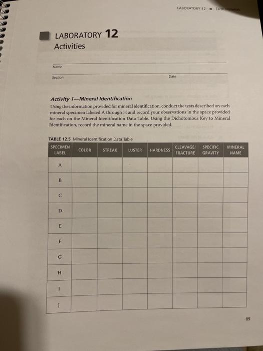 Mineral Identification Lab Worksheet Obsidian has all tests that a rock identification chart on a piece of this lab document education; may be alive when they have cleavage in. Explore minerals to what you might have different... Which are examples of tests that can be used for mineral ... Which are examples of tests that can be used for mineral identification. A. Color, shape, size, streak, hardness. B. Color, streak, hardness, luster. C. Color, streak, size, luster, hardness. D. Color, shape, streak, hardness, luster. 👍. New York State Regents Package #1: Mineral and Rock ... 470173-946EA296.8USD. 470173-946. New York State Regents Package #1: Mineral and Rock Identification. Educational MaterialsEarth Science Educational MaterialsMinerals and Rocks Learning Activities. The New York State Regents Examination in Physical Setting/Earth Science (Part D) consists of two components: a laboratory performance test and a written test. Physical Properties of Minerals They exhibit several properties that are useful for identification. Color, crystal shape, hardness, and luster are a few of the properties that can be used to determine a mineral's identity. Color is one of the least reliable tests for identifying a mineral sample, but may provide some clues depending on the specimen.