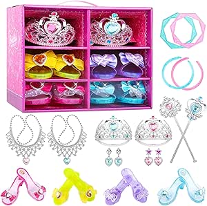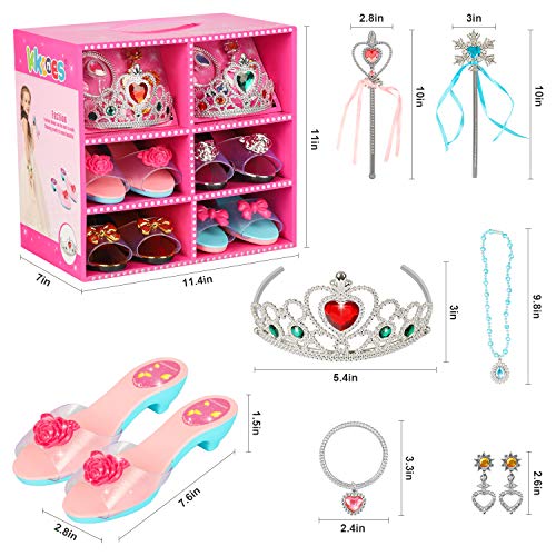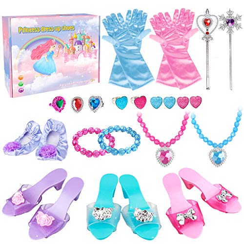 21 Pack Princess Pretend Jewelry Girl's Toys, Girl’s Jewelry Dress Up Play Set,Birthday Party Supplies Included Crowns,Necklaces,Wands,Rings,Earrings