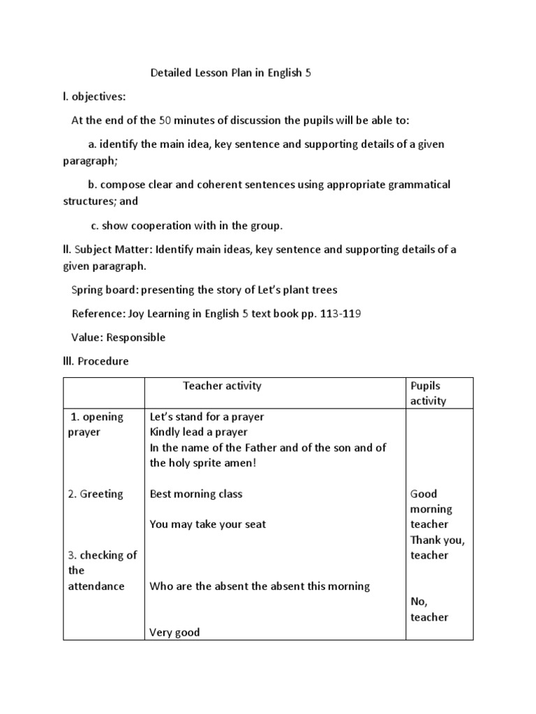 Video result for main idea and details learning objectives lesson plan Related Lesson Plans Main Idea and Details This lesson is designed to teach students to use information gained from the illustrations and words in a print or digital text to demonstrate understanding of its characters, setting, or Grade 4: Main Idea and Supporting Details. IDEA Lesson Exemplar.