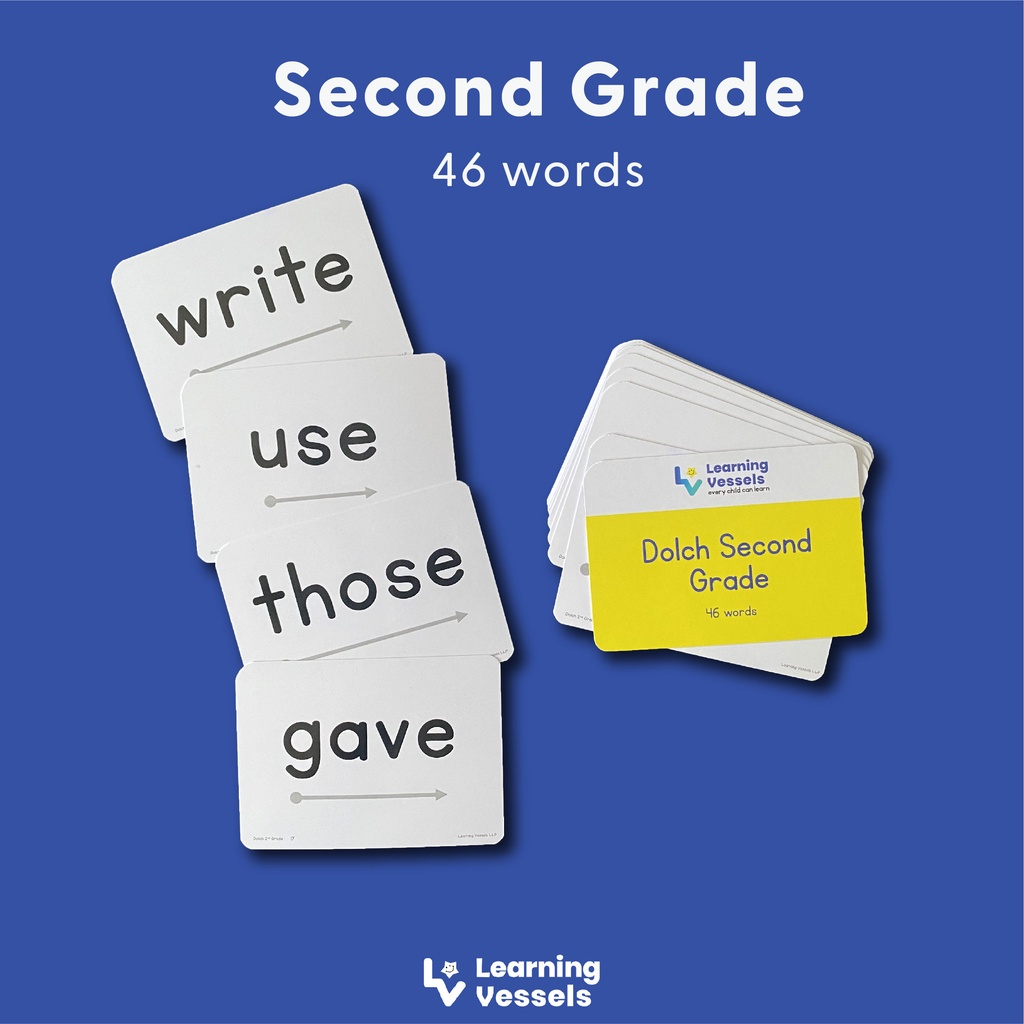 There are 46 second grade Dolch words: always, around, because, been, before, best, both, buy, call, cold, does, don't, fast, first, five, found, gave, goes, green, its, made, many, off, or, pull, read, right, sing, sit, sleep, tell, their, these, those, upon, us, use, very, wash, which, why, wish, work, would, write, your