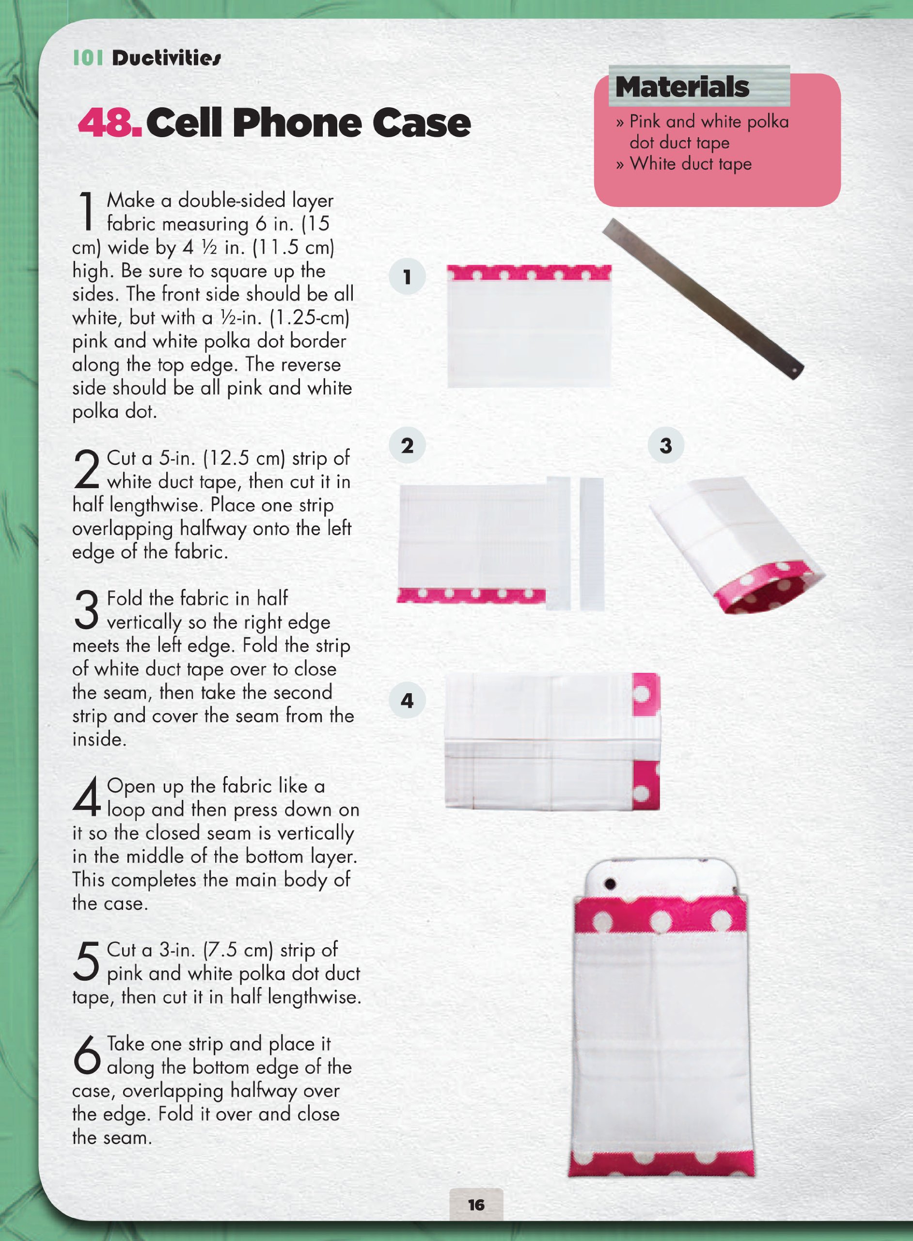 33 Awesome DIY Duct Tape Projects and Crafts Thirty three duct tape tutorials for crafty fun using duct tape. 1. DIY Chic Duct Tape Hammock Tutorial 101ducttapecrafts. This do it yourself idea for your phone is cool because it is stylish and also waterproof. Easy to follow instructions will have you wanting to make this one several times for...