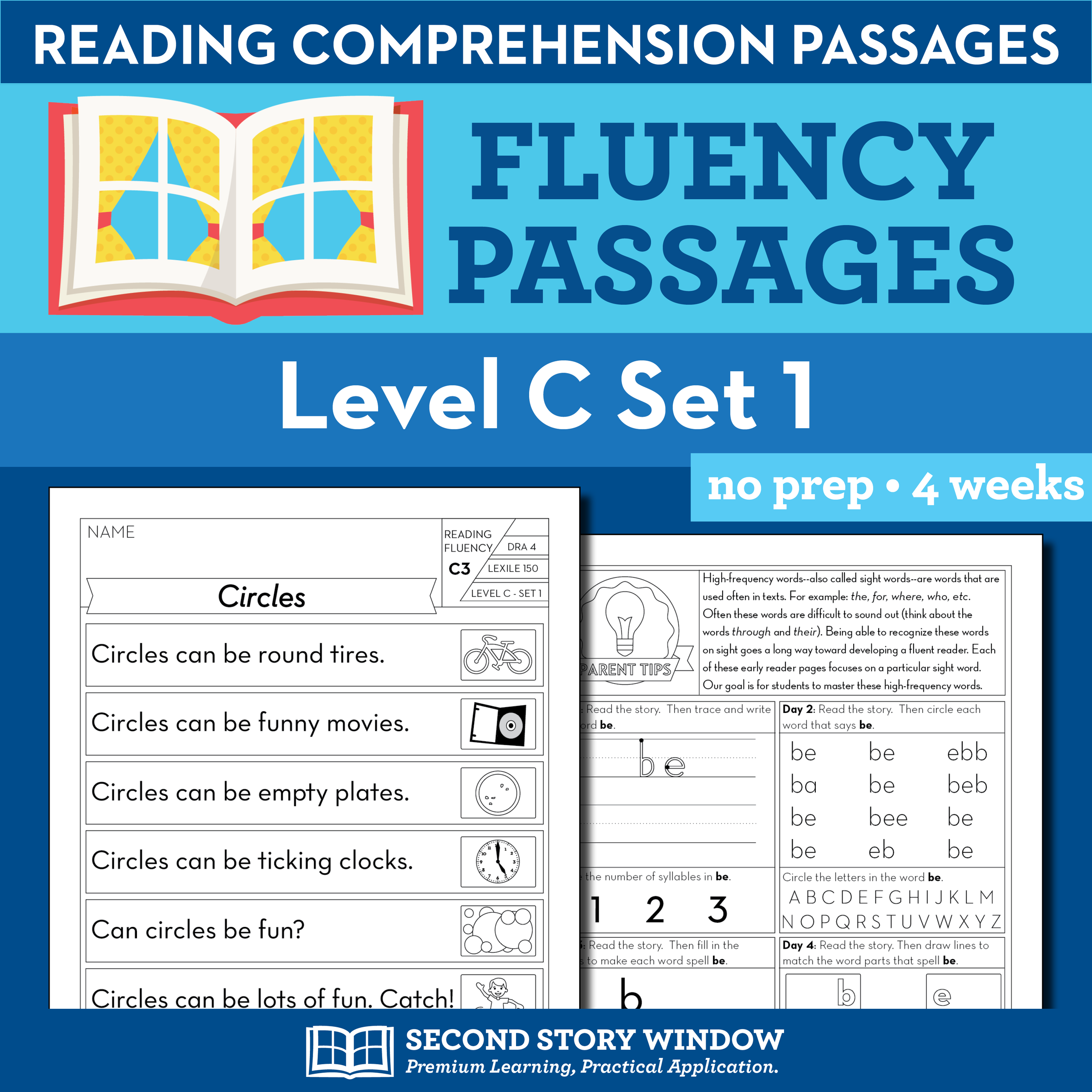Level C READING COMPREHENSION Level referenced in the top left corner of every page Multiple lines of text with repeated phrases and basic picture clues Build fluency by reading the passage three times, marking or coloring each time it is read Comprehension activities to be completed with guidance (for this level) One text-based question and one question These level C reading passages and short stories can be used for comprehension and fluency. They are great in whole group, small group, guided reading, and intervention settings.There are a total of 15 passages in this download. All passages are fiction in this set. Each passage has picture referenc