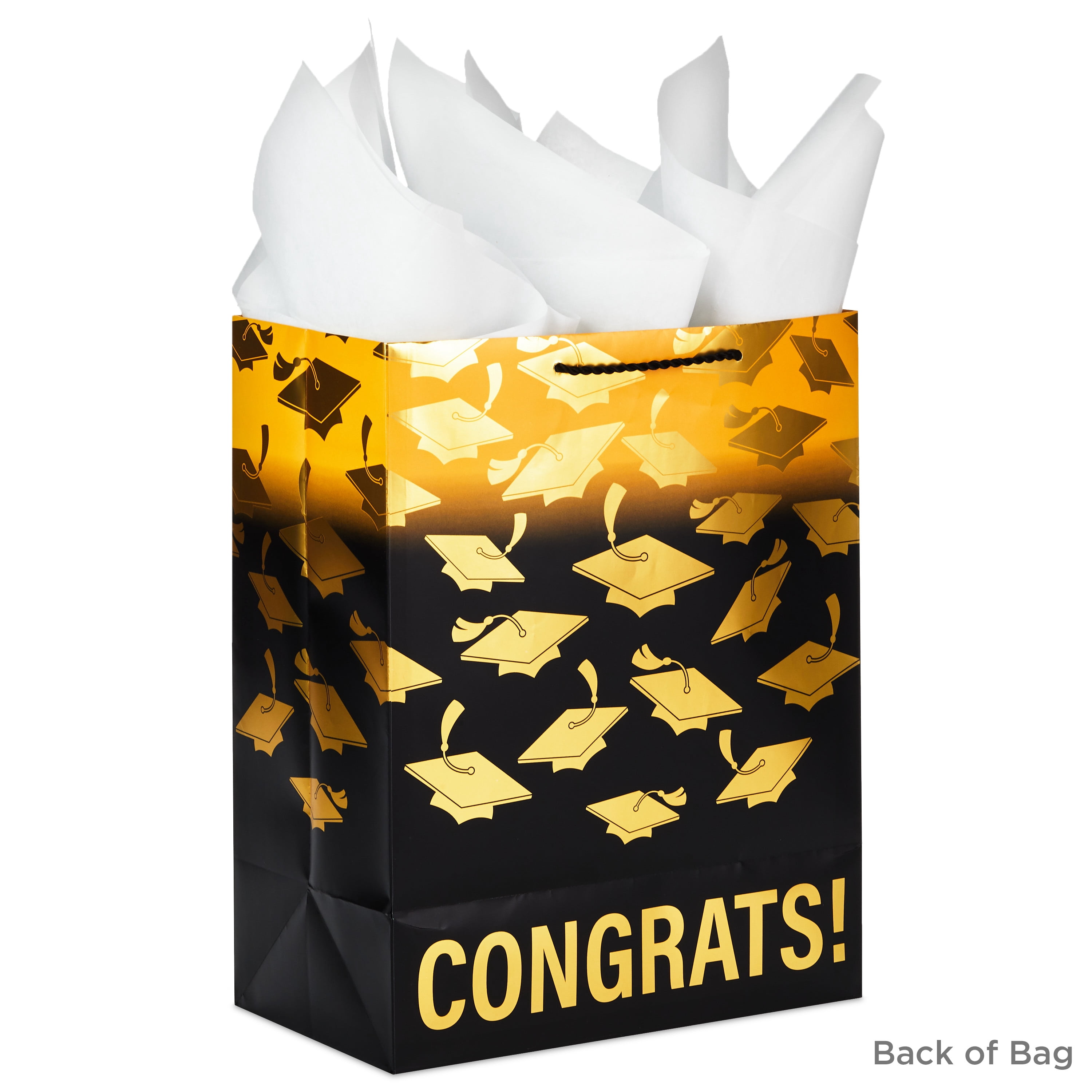 Hallmark 13" Large Graduation Gift Bag with Tissue Paper (Gold and Black, "Congrats!") for High School, College, Kindergarten, 8th Grade and More