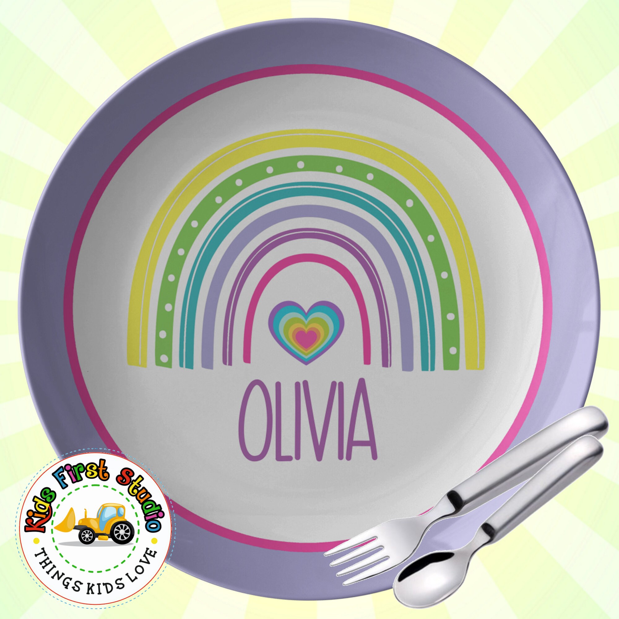 Personalized Rainbow Plate Toddler Kids Birthday Gift For Boys Rainbow Kids Dinnerware Colorful Rainbow and Heart Plate For Toddlers Kids