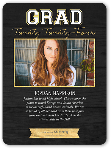 Graduation Announcement - Must-know Etiquettes & Ideas for ... - Gossby Without a party, the announcement still needs some basic information such as your name, school name, graduation year, the focus of study, honor, thank-you note, etc. Or, you can keep everything as simple as the example below: "Class of 2022. . ."
