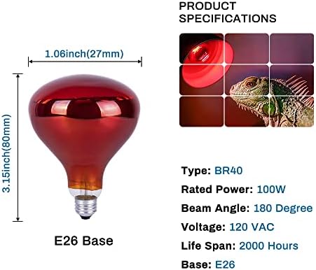 Incandescent Heat Lamp, 250 Watt Infrared Bulb,Therapy Recessed Light Bulb for Heat Lamps, Incandescent Spotlight for Brooder Bulb, Pet, Bathroom, ...