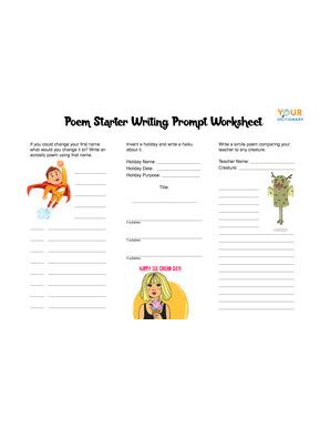 Printable Writing Prompts - Super Teacher Worksheets Creative Writing - Story Pictures. Write fun stories to go along with the cartoon pictures. Writing Worksheets. Worksheets to practice writing dates, writing names, letter-writing, and more. Persuasive Writing Prompts. Write persuasive opinion essays on a variety of topics. Students use details to support their points of view.