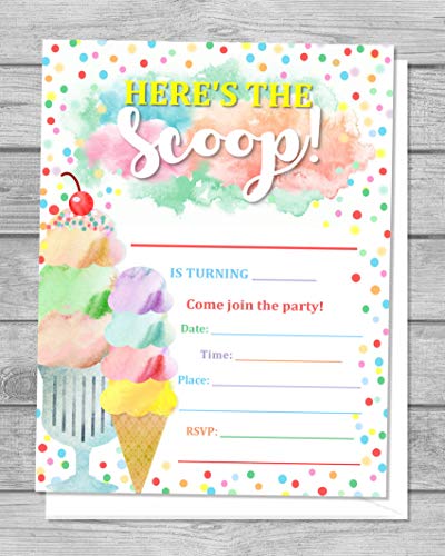Amazon.com: ice cream invitations Ice Cream Party Invitations, Ice Cream Birthday Party Invites With Envelopes, Here's The Scoop Ice Cream Social, Fill In The Blanks, Ice Cream Bash, Flat Cards, Set Of 20, Size 4.25" x 5.5" 2 $1500 Get it Mon, Jul 18 - Wed, Jul 20 $3.00 shipping Small Business