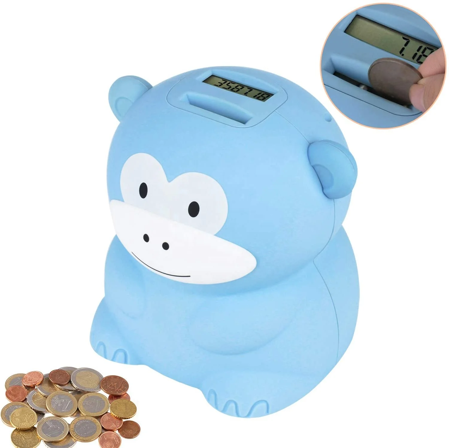 Amazon Best Selling Big Plastic Monkey Shape Digital Counting Coin Bank Passed Ce Rohs - Buy Piggy Bank Counter Coin Electronic Digital Lcd Counting ...