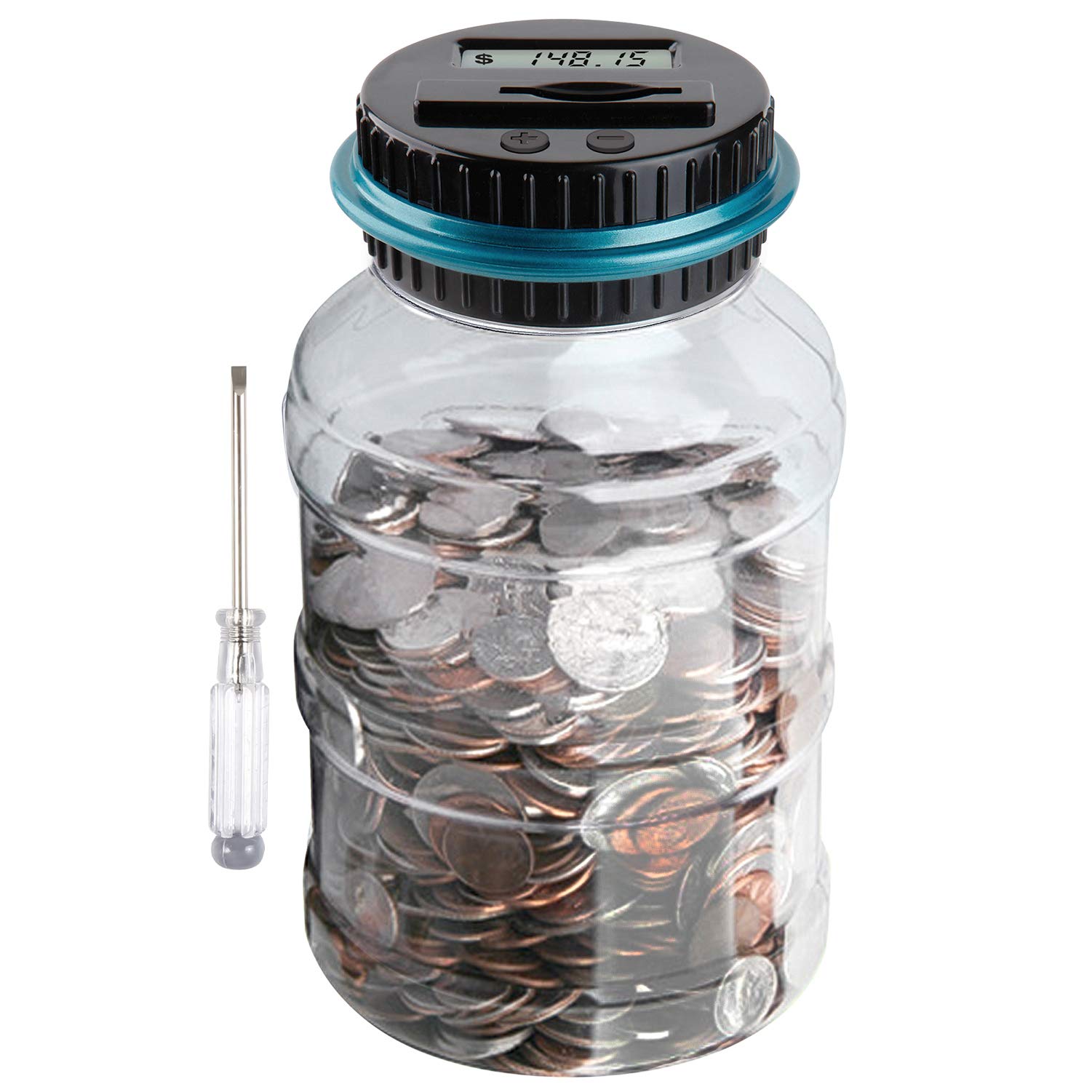 M&R Digital Counting Coin Bank. Batteries Included! Personal Coin Counter/Money Counting jar, totals up Your Savings- Works with All US Coins-in ...