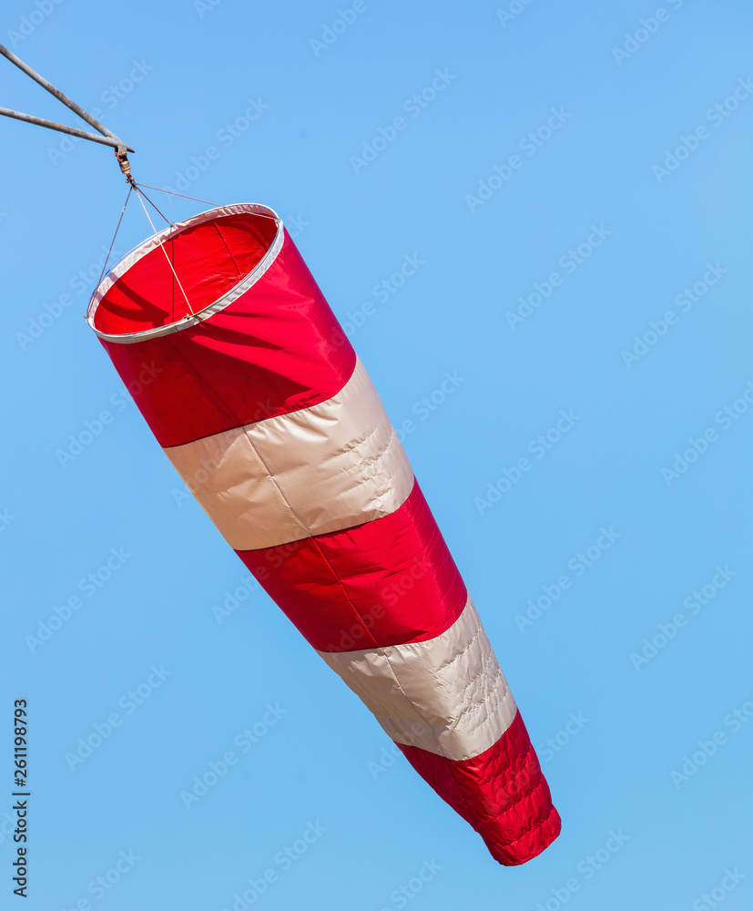 A windsock in an airport against blue sky. A windsock is a ...