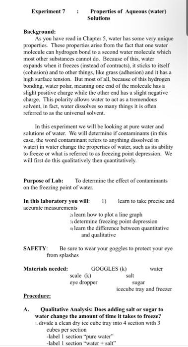 Best Science Experiments with Water - Rookie Parenting Lava lamp in a glass using water, oil and blue food coloring Homemade Lava Lamp ; water with rainbow color inside a straw Sugar Water Density Experiment. 5: Properties of Hydrates (Experiment) - Chemistry LibreTexts Sep 22, 2021 · When you have completed the experiment, dissolve all your heated residues in water, put all your solids and liquids in the waste crock. Pre-laboratory Assignment: Properties of Hydrates A student trying to determine if a white solid is a true hydrate heats the sample and finds that there is evolution of water, that the residue obtained is ... (PDF) Water: Structure and Properties - ResearchGate Apr 25, 2001 · Water is a major component of all living things. It is anomalous in many of its physical and chemical properties. Some are essential for life while others have profound effects on the size and ...