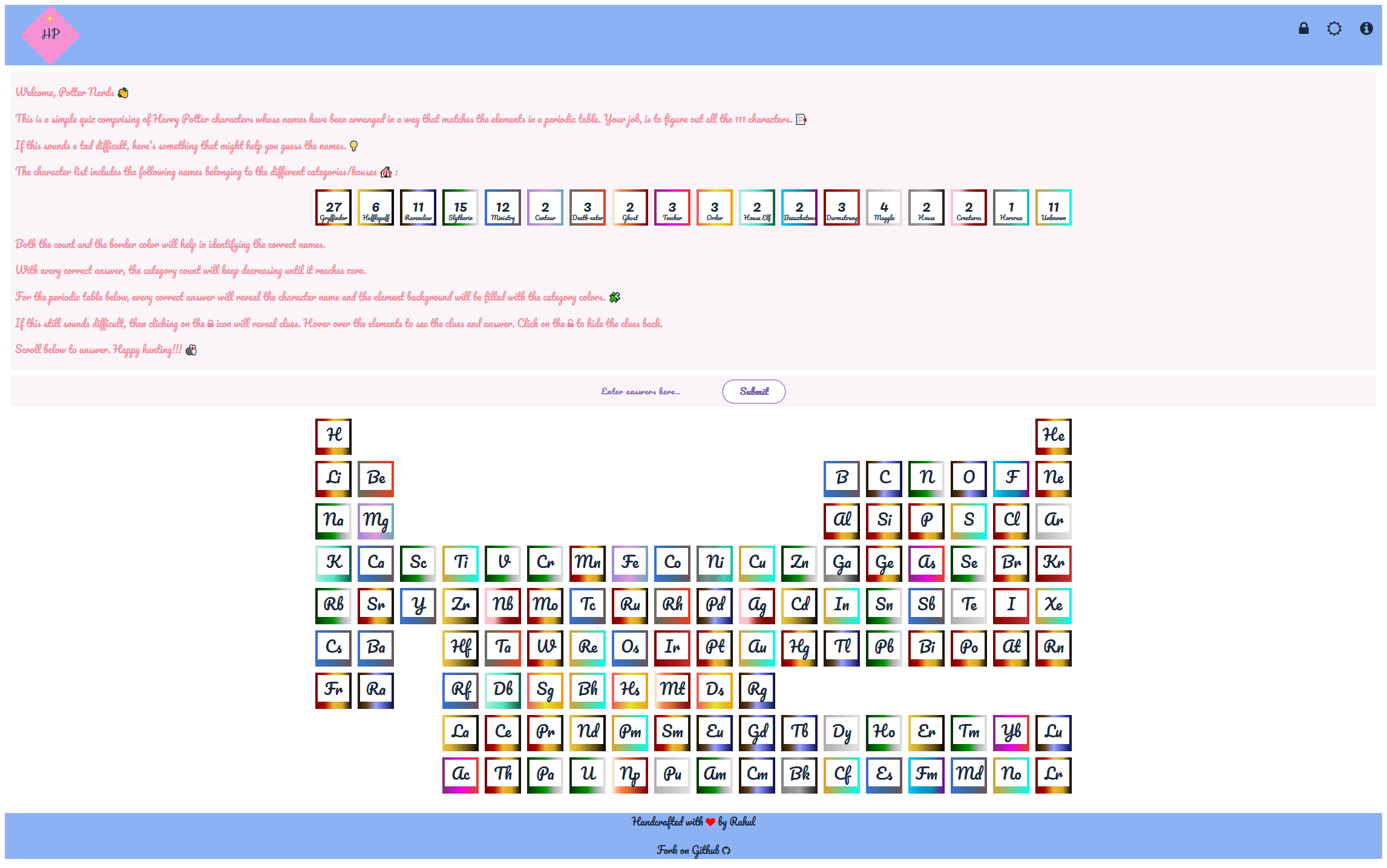 Quiz on periodic table