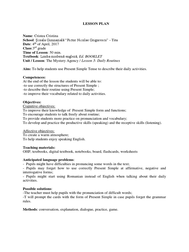 Vocabulary lesson plans 3rd grade