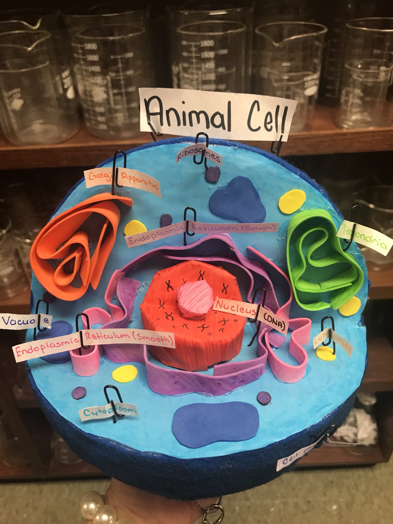 7th grade animal cell 3d project - Pinterest My son created a 3D animal cell for his high school biology class using Styrofoam, foam sheets, colored pipe cleaner, beads and play dough.