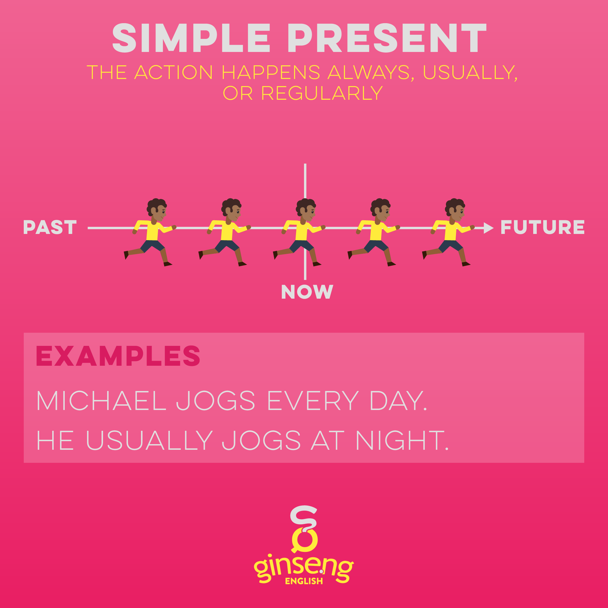 Simple Present Tense: Rules And Examples - Thesaurus.com Simple Present Tense Verbs - Twinkl The simple present tense is used when events happen continually over a period of time in the present. For example, when activities are done daily or by ...