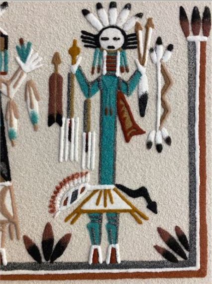 Navajo Sand Painting | Native American Indian Art | Sand Painting as ... The figures in sand paintings are symbolic representations meant to tell a story in Navajo mythology. They might represent objects like the sacred mountains where the gods live, or legendary visions, or they illustrate dances or chants performed in rituals. Click here to play the Sand Painting Game, or try our Sand Painting Game Version 2.