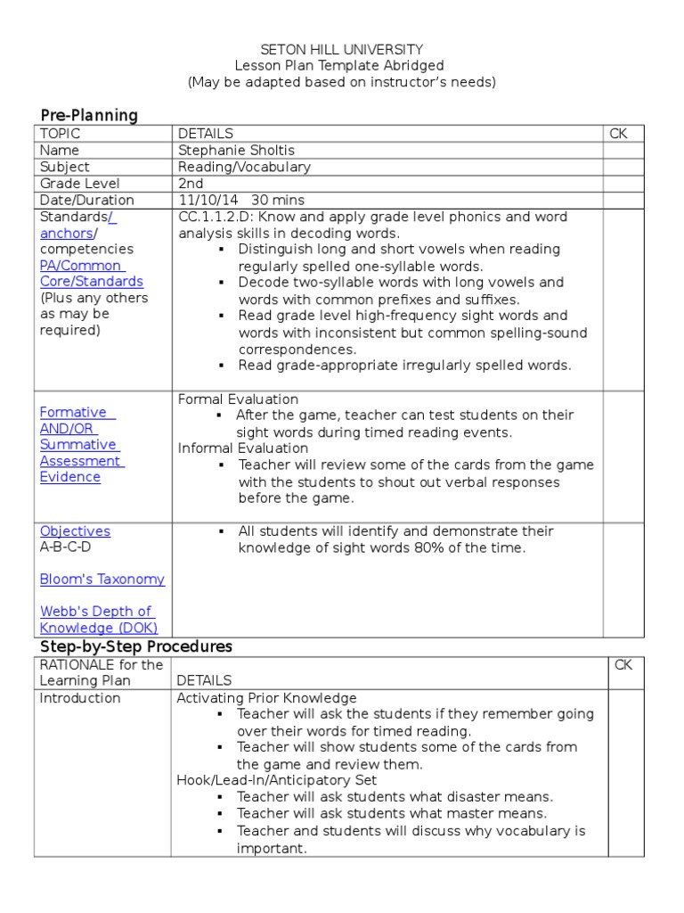Sight word lesson plans