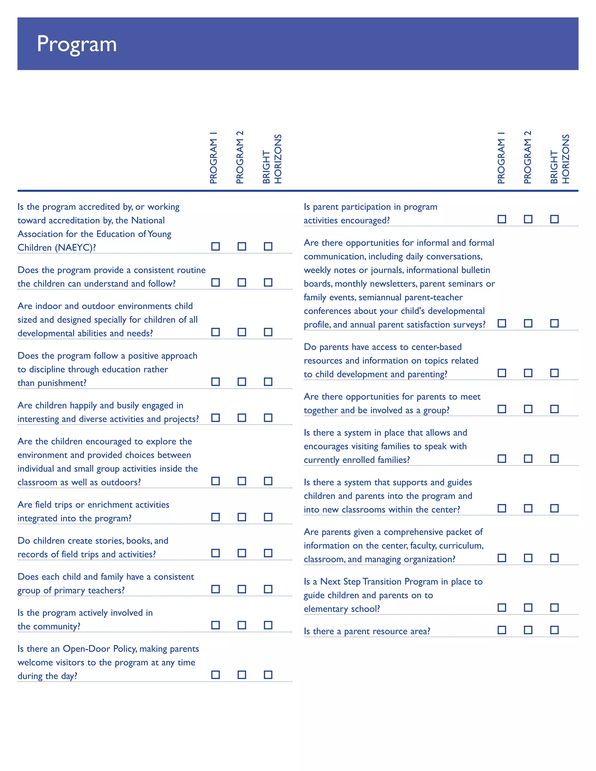 Enrollment @ Bright Horizons Enrollment at Bright Horizons ® Thank you for choosing Bright Horizons' early education and preschool programs. Whether you are a new or returning family we are thrilled to welcome you and excited to have this opportunity to provide your child with the highest quality education and care.