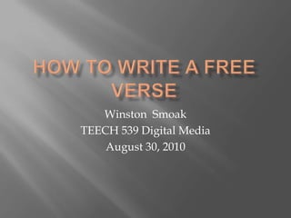 How to Write in Free Verse | Proofed's Writing Tips Pick a theme. 2. Freewrite your ideas. 3. Draft your free verse poem. 4. Read the poem aloud. 5. Don't forget to proofread! To learn about each of these steps in detail, read on below. 1. Decide What Your Poem Will Be About You may already know what the subject of your poem will be.